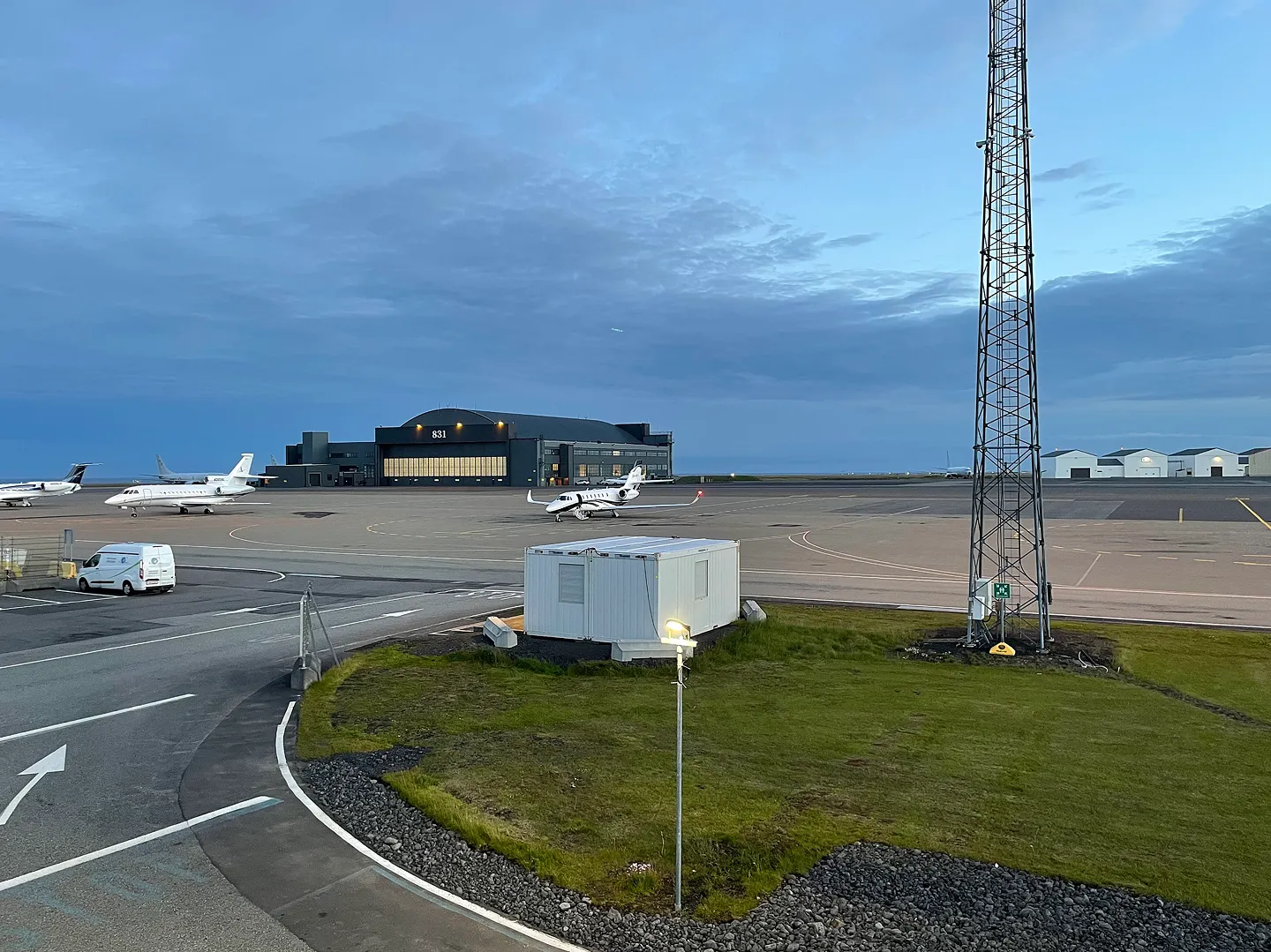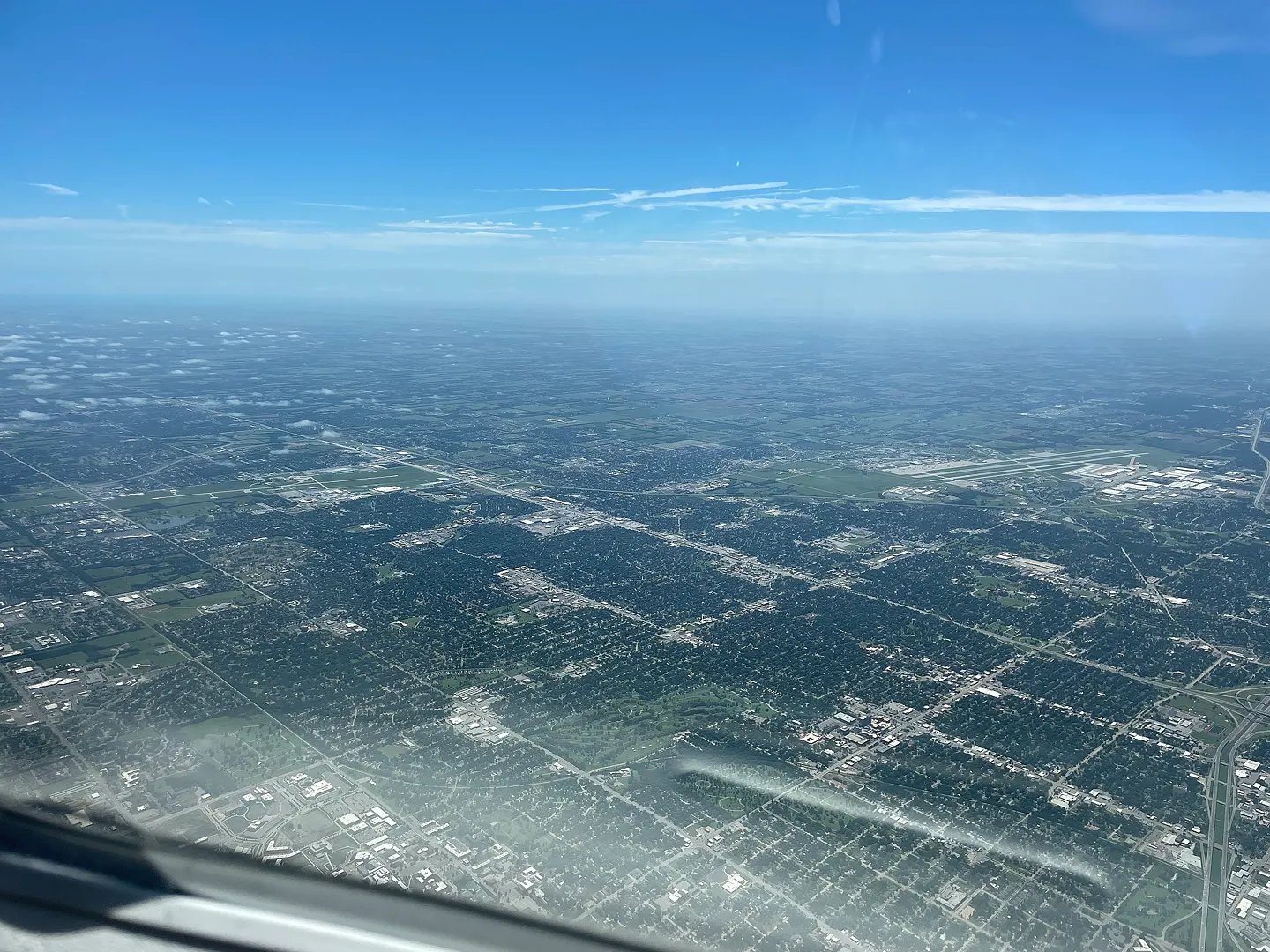 Before takeoff at Wichita Handling, looking back at the factory (opposite side)